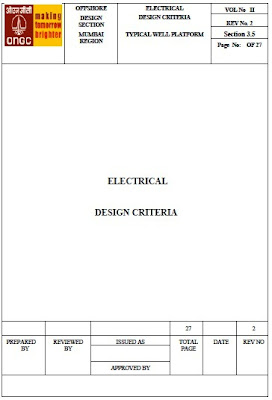 - Standards of Design :Describe pertinent standards of design, such as voltage drop, and equipment ratings.